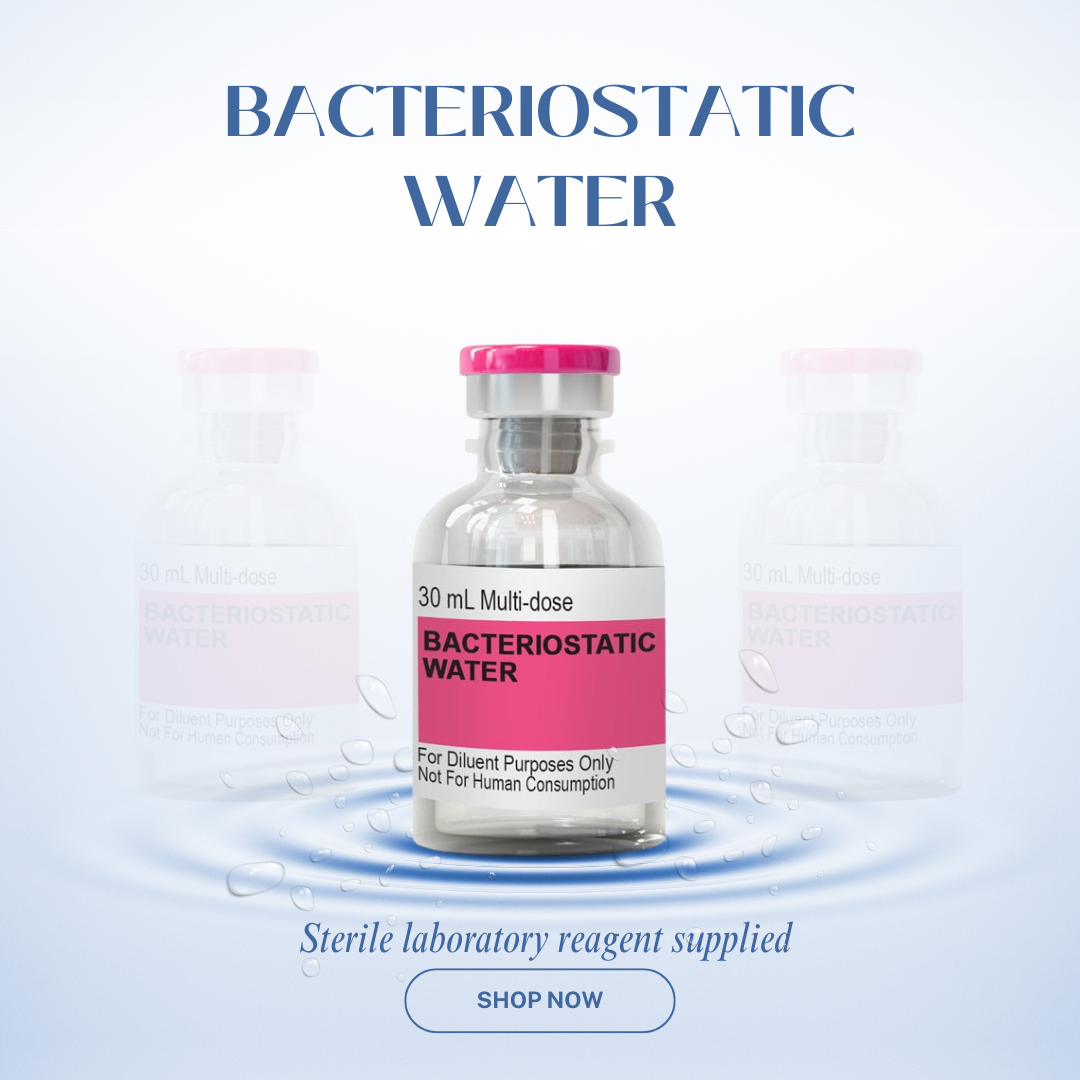 Bacteriostatic Water is a sterile, non-pyrogenic water solution containing benzyl alcohol as a bacteriostatic preservative. It is supplied as a laboratory reagent for use in controlled research environments involving solution preparation and analytical procedures.