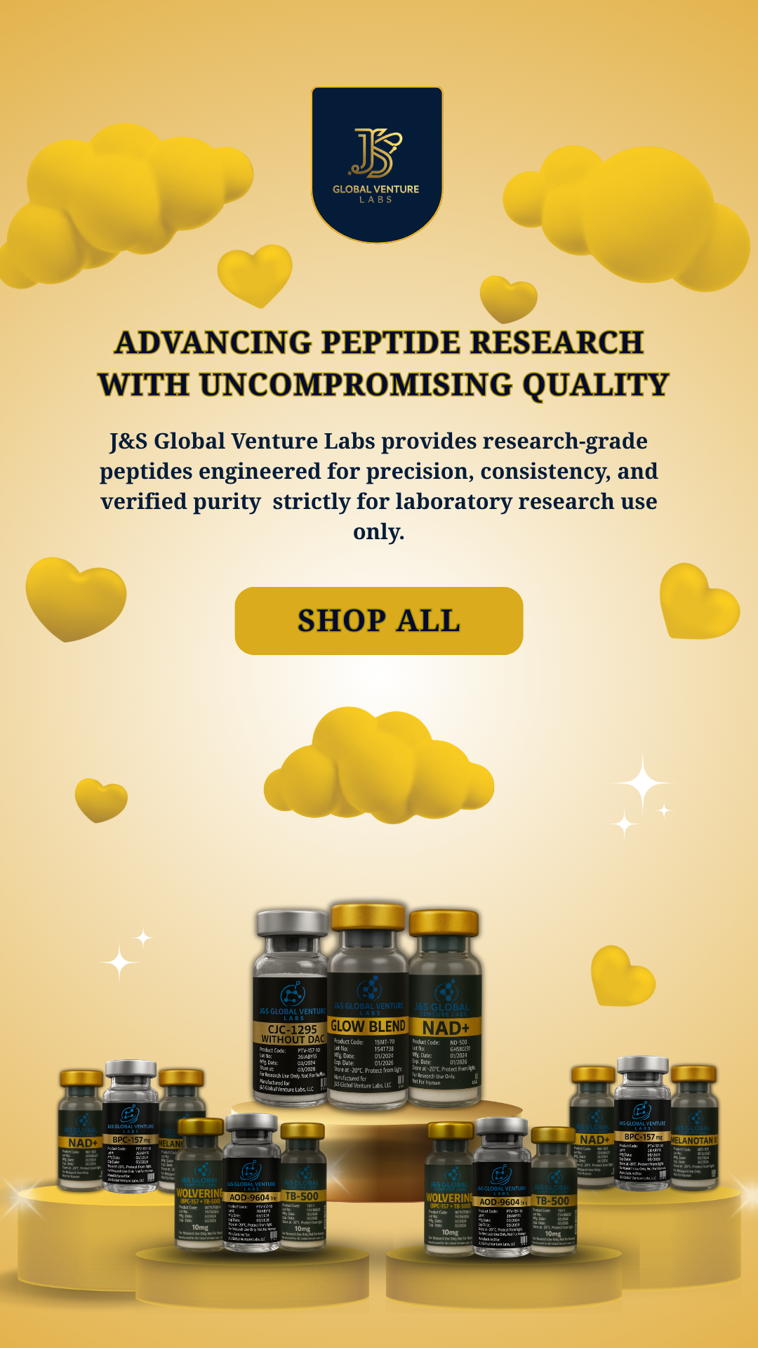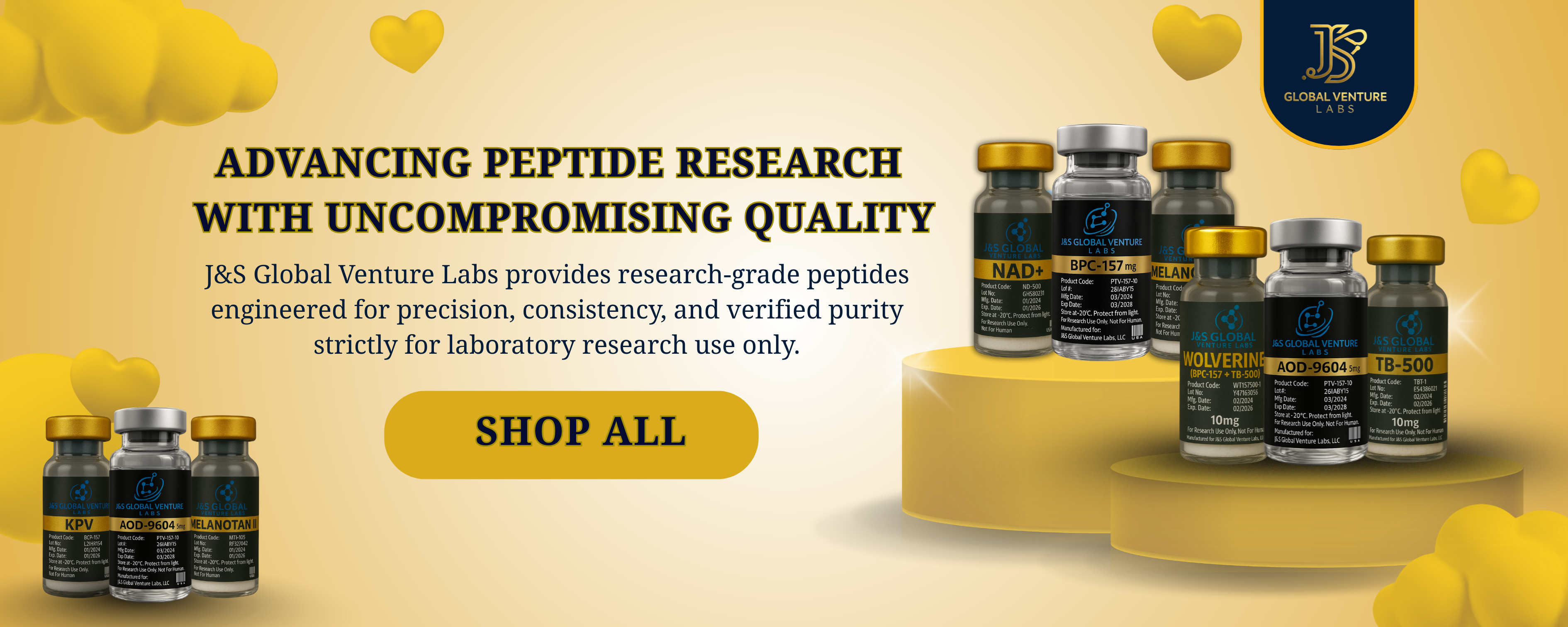 J&S Global Venture Labs is a research-focused supplier specializing in high-purity peptides and laboratory compounds intended strictly for research use only. We serve qualified researchers, laboratories, and institutions that require consistency, transparency, and dependable sourcing.